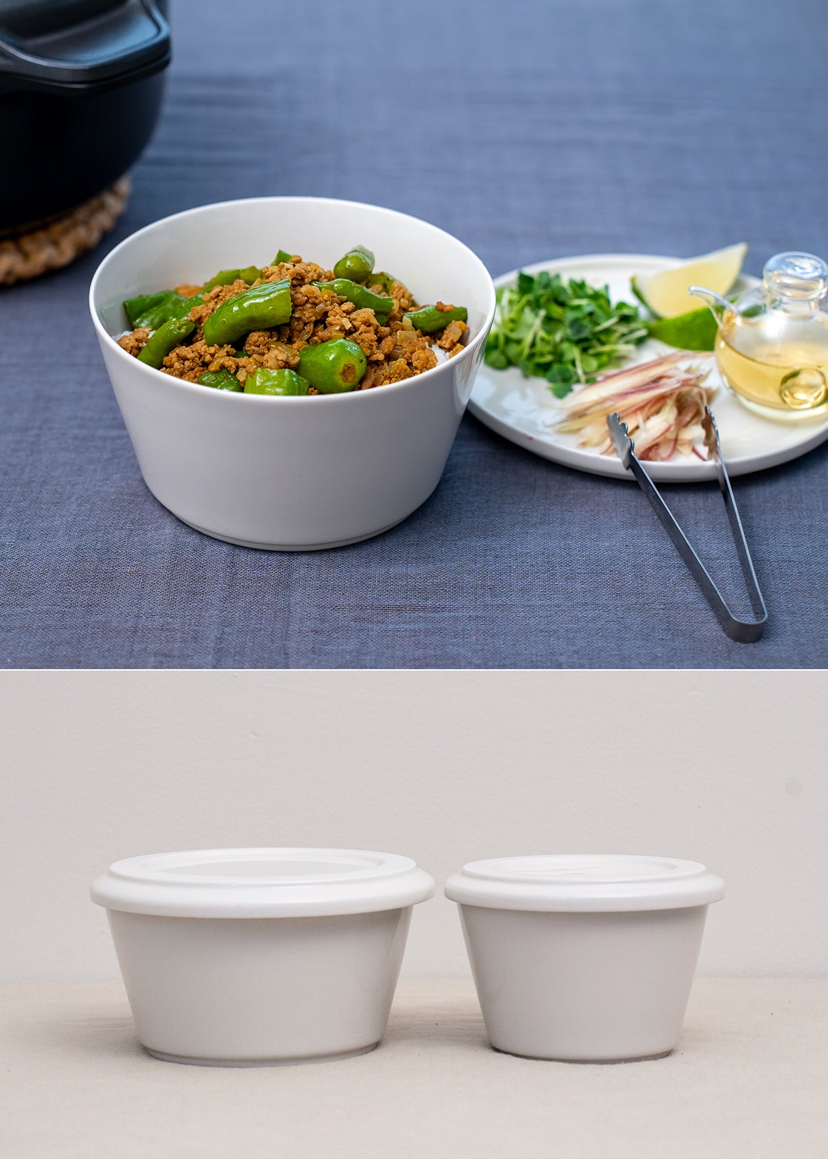 「道具を扱うツチキリが唯一お勧めするのがTRIP WARE。ボウルとプレートを組み合わせることでプレートがフタになり、そのまま保存容器としても使えます。もうひとつの特徴は、原料にリサイクル陶土を使っていること。ラップいらずでエコに繋がる器です。」